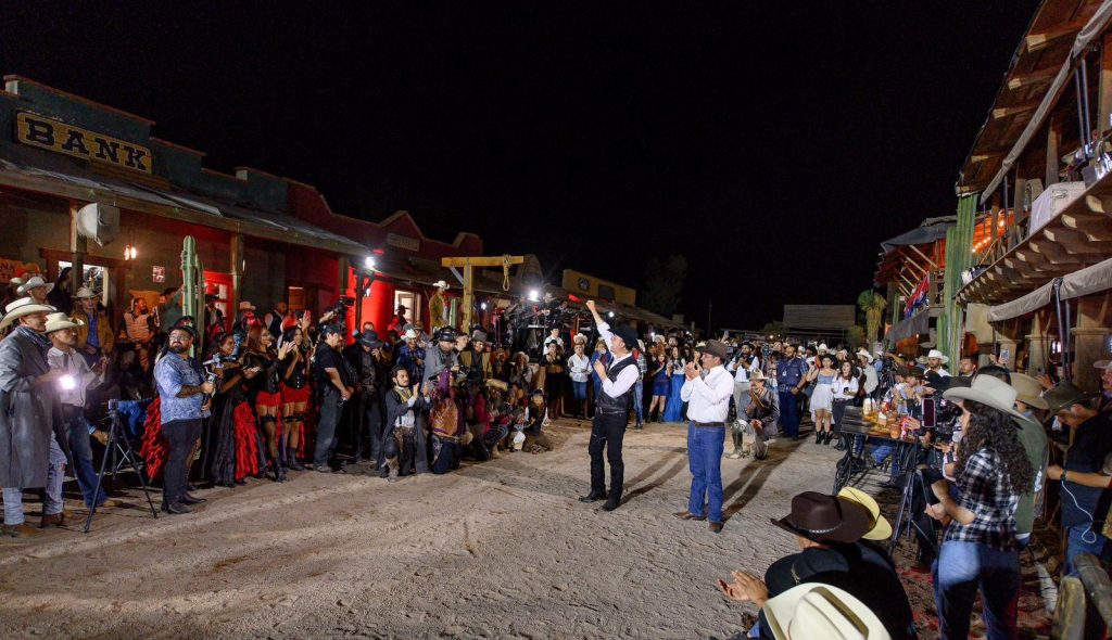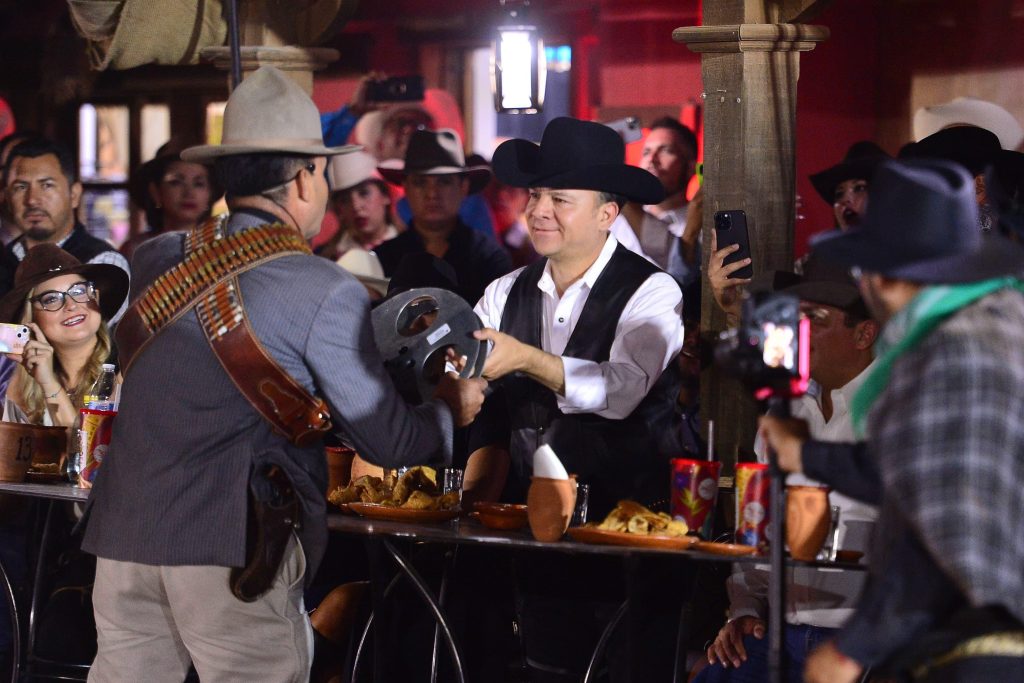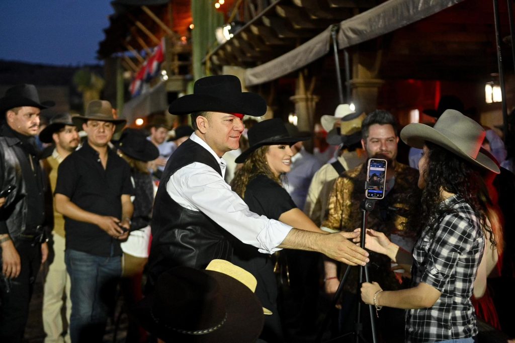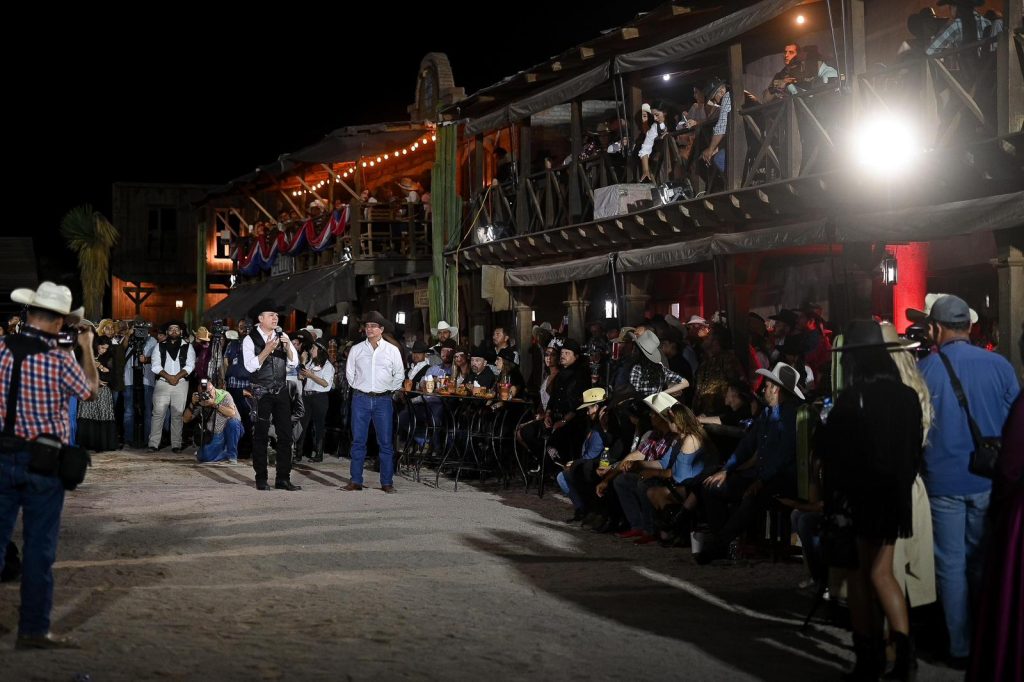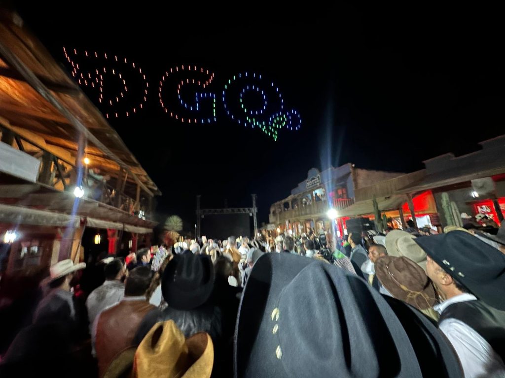 Al estilo del viejo oeste, luces, colores y la magia de un show de drones, el Gobernador Esteban Villegas, acompañado de su esposa Marisol Rosso, presentó la Cartelera 2024 de la Feria Nacional Villista, que se llevará a cabo del 19 de julio al 4 de agosto con un amplio programa para el disfrute de todas las familias en el marco de la celebración del 461 Aniversario de Durango.