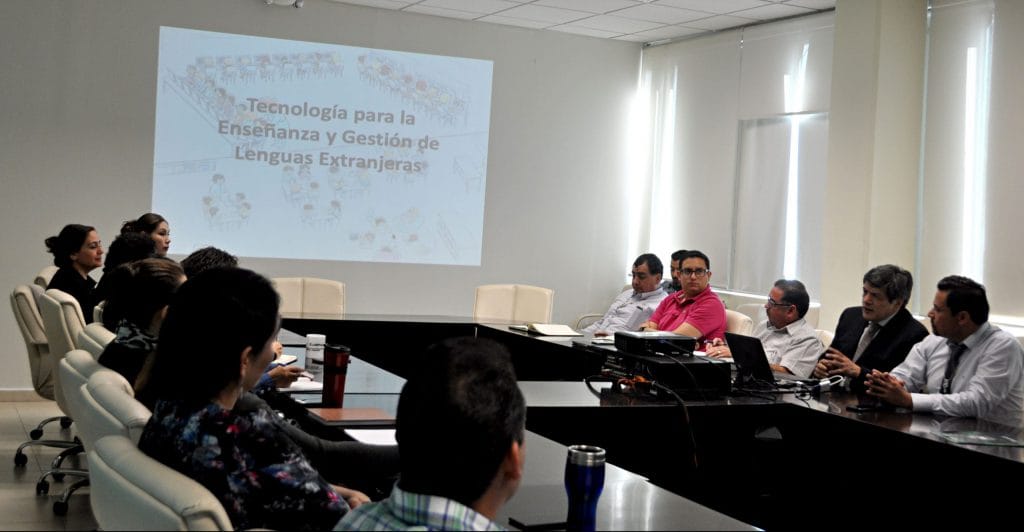 Una amplia explicación sobre la plataforma para elevar la calidad los procesos de enseñanza aprendizaje del idioma inglés a cargo de Luis Mejía Piña fue la que se llevó a cabo con directivos de diferentes áreas de la dirección académica del COBAED, donde además estuvieron presentes directores de planteles y el propio director general Bonifacio Herrera Rivera con el tema “Tecnologías para la enseñanza y gestión de lenguas extranjeras”.