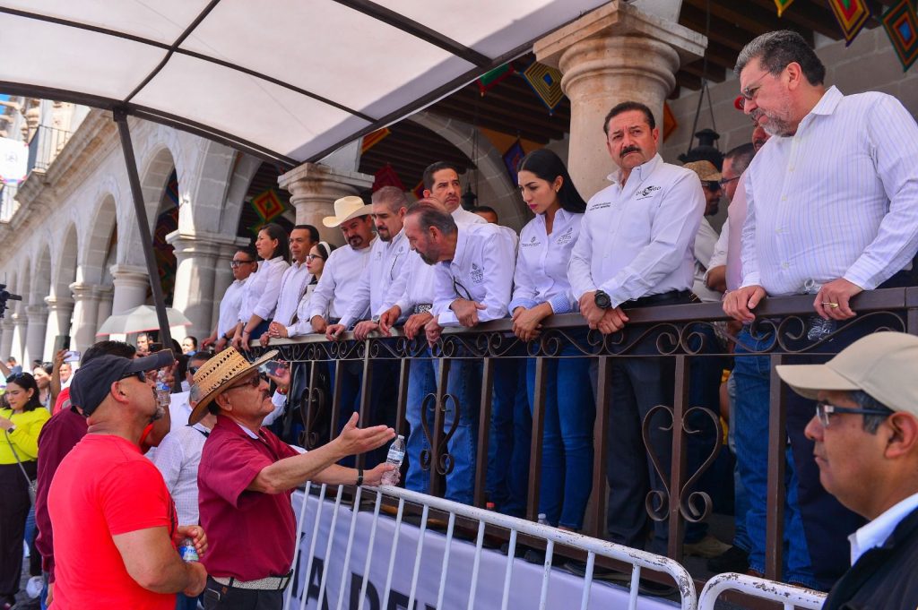 Líderes sindicales y autoridades estatales depositaron ofrenda floral en el busto de José María Morelos y Pavón, en honor a los trabajadores que han dedicado su vida al servicio de la comunidad, seguido de una guardia de honor como muestra de respeto y gratitud.