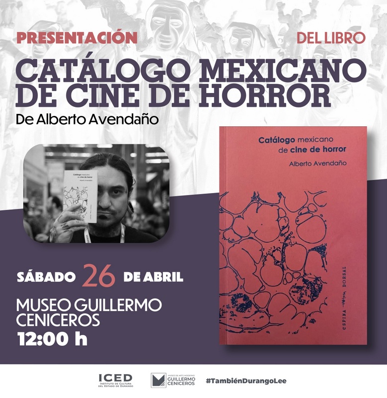 Finalmente, el sábado 26 de abril a las 12:00 horas, se presentará el libro “Catálogo Mexicano de cine de Horror” de Alberto Avendaño, una obra que no sólo aborda lo paranormal o fantástico, sino también los horrores reales de la sociedad mexicana representados en películas como Canoa, Las Poquianchis, El infierno y Las elegidas. En palabras del escritor Alejandro Ortega Neri, Avendaño realiza un ejercicio “metanarrativo y meta artístico” que transforma el horror cinematográfico en una propuesta literaria única, con gran sensibilidad poética.