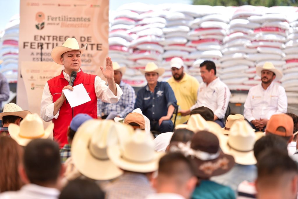 El objetivo de este programa es contribuir con los cultivos prioritarios para la producción de alimentos de pequeños y medianos productores de temporal y lograr la autosuficiencia alimentaria, apuntó Leopoldo Jiménez Mercado, representante de la Secretaría de Agricultura y Desarrollo Rural (SADER), quien destacó que gracias a la buena coordinación con el Gobierno Estatal, ha sido posible que a la fecha se hayan atendido a más de 25 mil productores, siendo Durango uno de los estados a nivel nacional que lleva un mayor avance en la distribución del fertilizante gratuito.