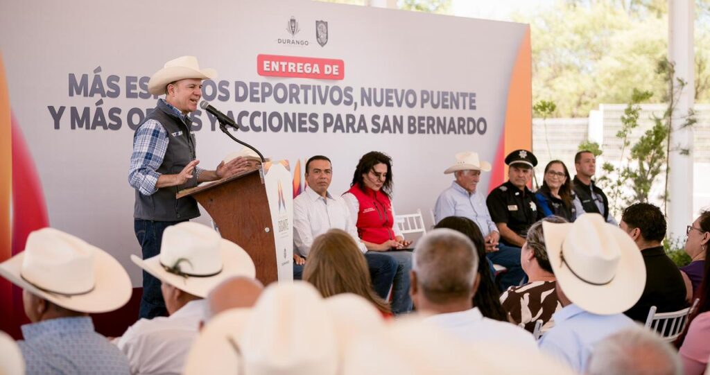 San Bernardo, Dgo.– “Estamos haciendo un gran esfuerzo con el alcalde para meterle fuerte a temas de agua, drenaje y obras que realmente cambian la vida de la gente”, dijo el gobernador Esteban Villegas Villarreal, durante la entrega de obras y apoyos a San Bernardo, junto al presidente municipal Manuel Eulogio Rodríguez Aguirre. La gira incluyó también actividades en Santa María del Oro, como parte de su recorrido por los 39 municipios del estado.