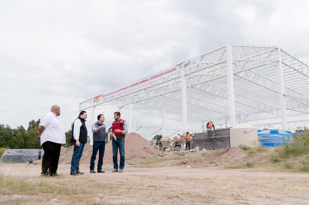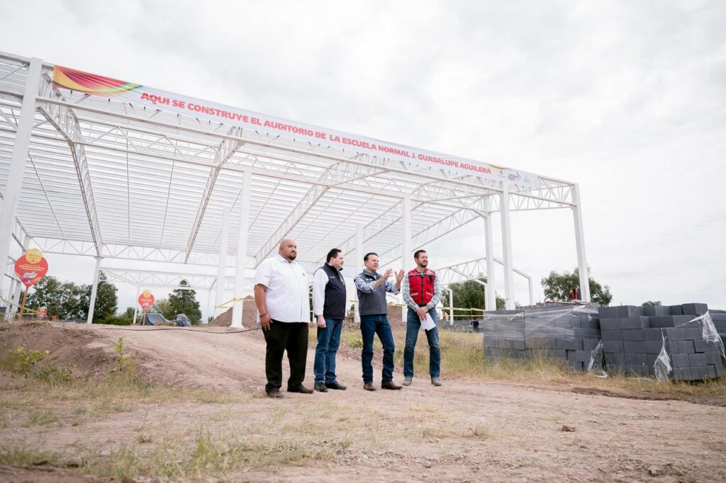 La Escuela Normal Rural J. Guadalupe Aguilera celebrará su 100 aniversario con una obra histórica: un nuevo gimnasio-auditorio que transformará la vida académica y comunitaria de sus alumnos. Así lo aseguró el gobernador Esteban Villegas Villarreal durante la supervisión de los trabajos de obra, al destacar que este espacio fortalecerá la infraestructura educativa y ofrecerá a los estudiantes un entorno moderno y funcional para realizar actividades deportivas, culturales y formativas.