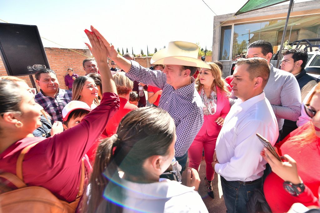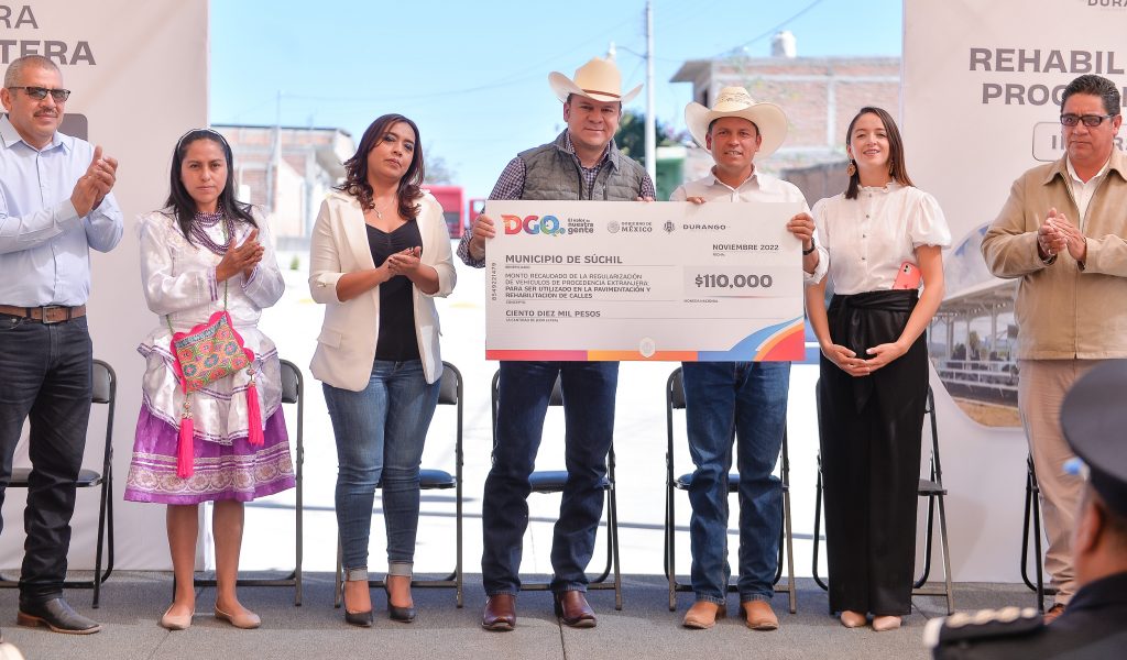 “Que se vea y se sienta que ya llegamos”, expresó Villegas Villarreal al hacer entrega en Súchil de la calle Pánfilo Natera, la rehabilitación de una escuela en conjunto con el Colegio de Estudios Científicos y Tecnológicos en el Estado (CECyTE); paquetes escolares y un cheque de 110 mil pesos que corresponde a la recaudación de la regularización de vehículos extranjeros.