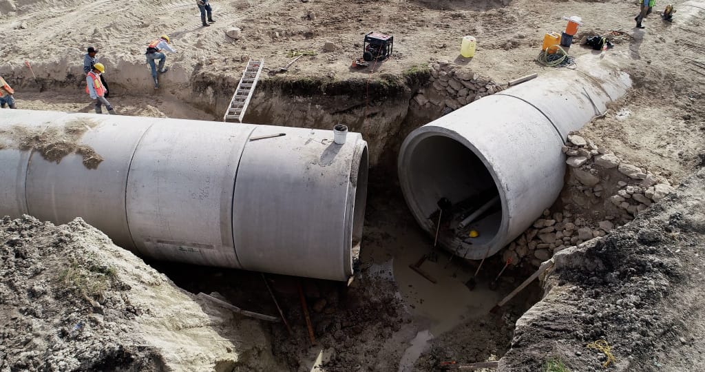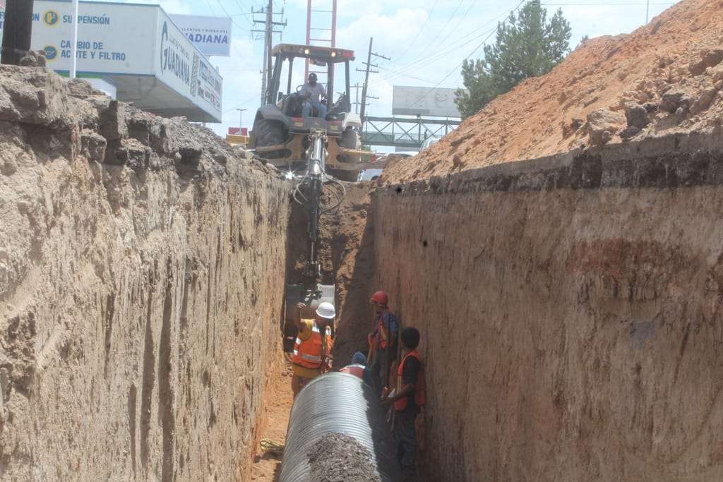 Paralelamente a estas importantes obras para el desalojo del agua de lluvias que se ejecutan al noreste de la ciudad, se lleva a cabo la construcción del colector y subcolector a lo largo del bulevar Francisco Villa, con una inversión cercana a los 10 millones de pesos.