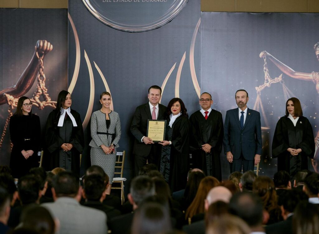 En la entrega de reconocimientos a jueces, juezas, magistradas, magistrados y comisionados, Villegas Villarreal resaltó que muchos juzgadores cuentan con trayectorias de entre 20 y 30 años de servicio, tiempo en el que han contribuido con su trabajo y experiencia a fortalecer el bienestar de la sociedad duranguense.