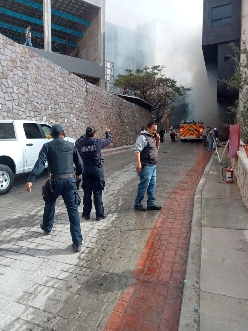 • Responden de inmediato Bomberos, rescatistas y Cruz Roja para proteger a los trabajadores y vecinos