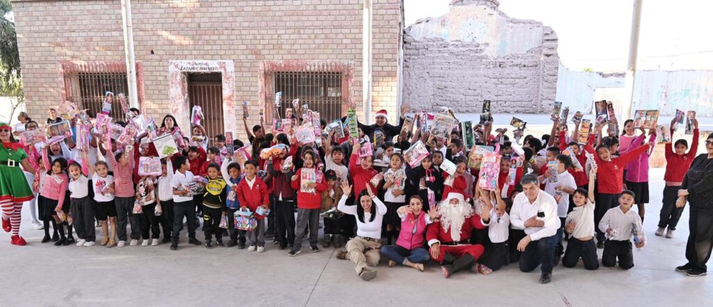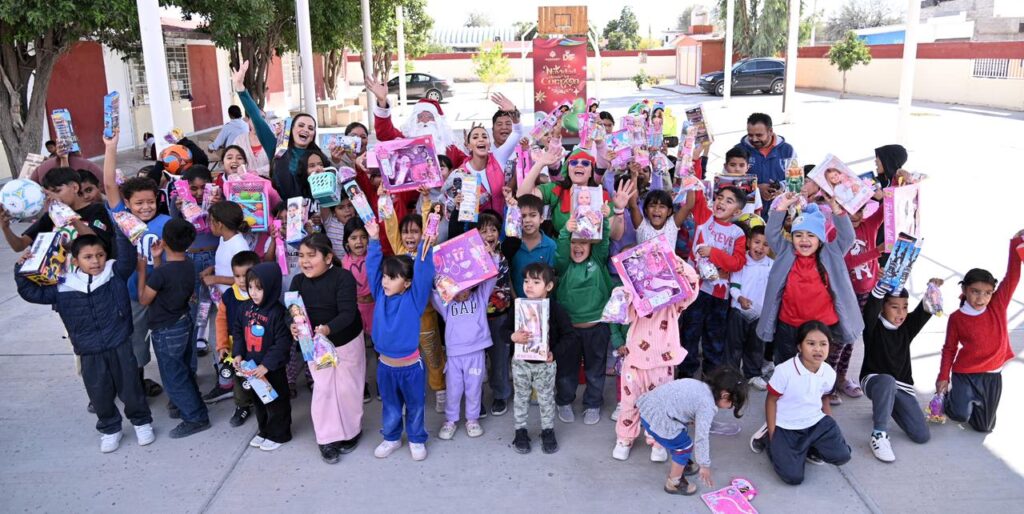 Región Laguna.– Como parte del Operativo Navideño 2025, la presidenta del DIF Estatal, Marisol Rosso Rivera, llevó la Ruta de las Sonrisas a niñas y niños de las comunidades Fortuna de Rancho Güero, Puente de la Torreña, Dolores y San Gerardo de Lerdo, así como El Vergel de Gómez Palacio, acompañada por las presidentas municipales Susy Torrecillas y Betzabé Martínez. En esta jornada, alrededor de 350 pequeños recibieron juguetes, aguinaldos y una tarde navideña especialmente preparada para ellos.