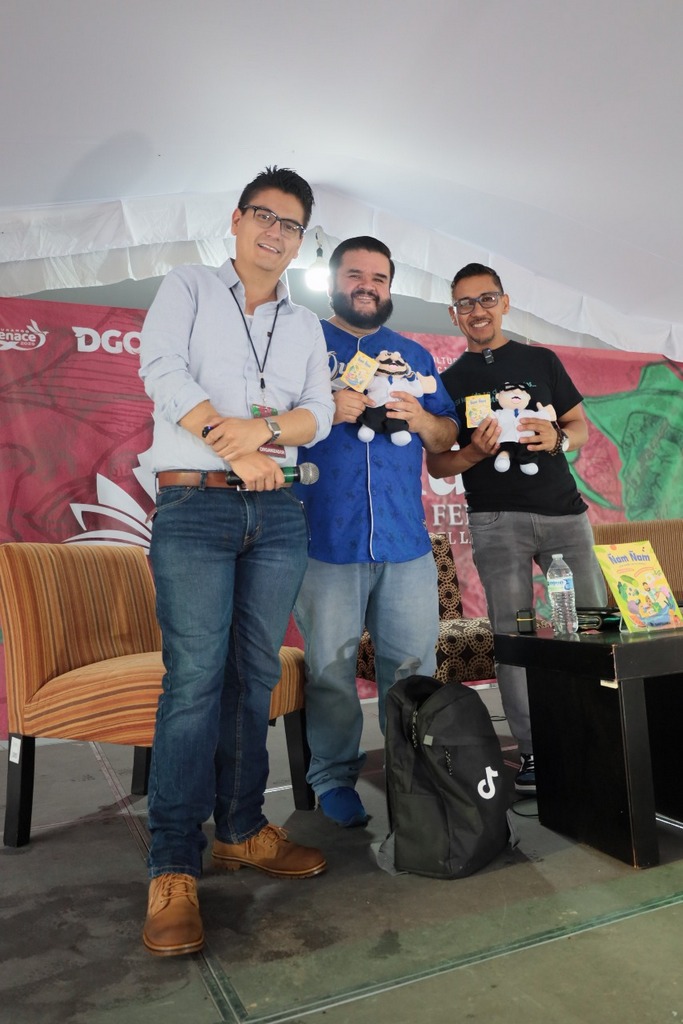 Ante un numeroso público, previo a una copiosa lluvia, recién llegados de Brúcelas Bélgica, tras haber obtenido el Premio otorgado por la comunidad científica española en Bélgica al mejor libro de divulgación científica en español, con éxito se presentó en la Feria Duranguense del Libro «Ñam Ñam. ¿Qué ondilla con la comida?» de Rafa Carbajal y Lucio Rodríguez como parte de sus actividades.