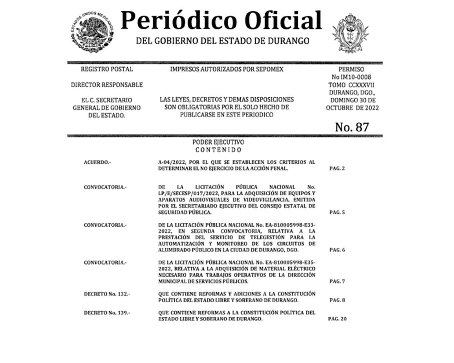 Este 30 de octubre fue publicado en el Periódico Oficial del Gobierno del Estado el Decreto 132 expedido por la LXIX Legislatura del Congreso del Estado, que contiene reformas y adiciones a la Constitución Política local en materia de órganos constitucionales autónomos.