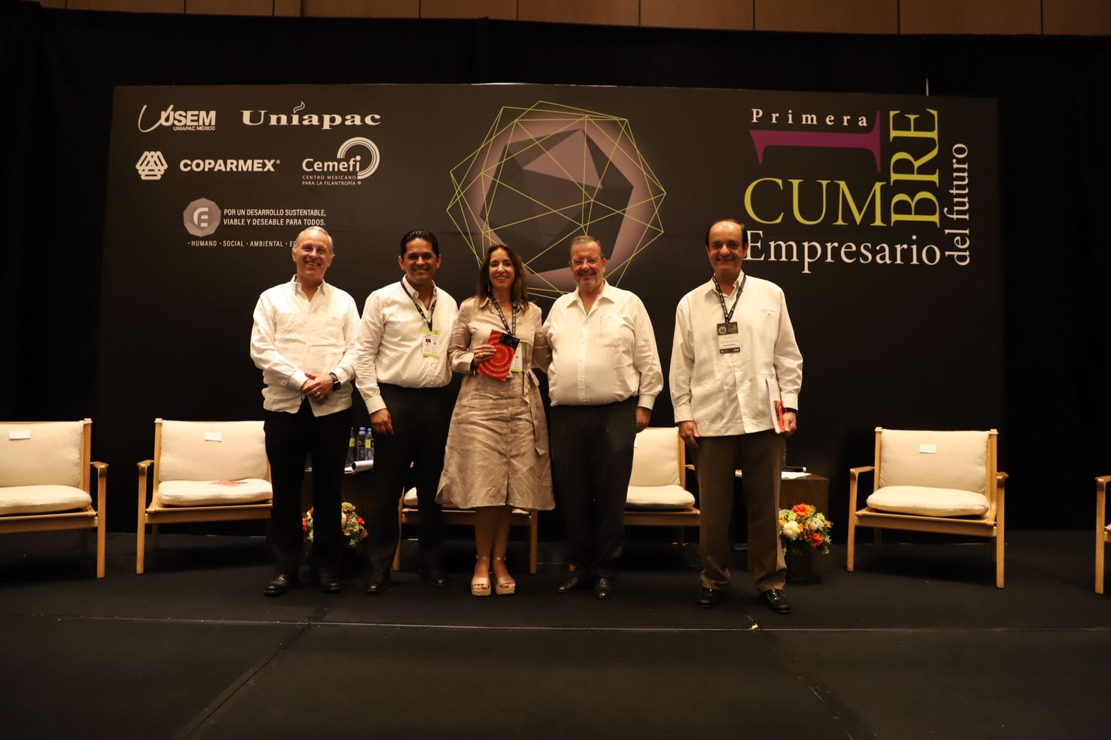 José Medina Mora, presidente Nacional de COPARMEX; Eugenio Cárdenas Zaragoza, presidente de Confederación USEM; María del Pilar Parás García, presidenta Nacional de CEMEFI; Bruno Bobone, presidente de Uniapac Internacional y Jesús Quirce Andrés, L.C., rector de la Universidad Anáhuac Cancún.
