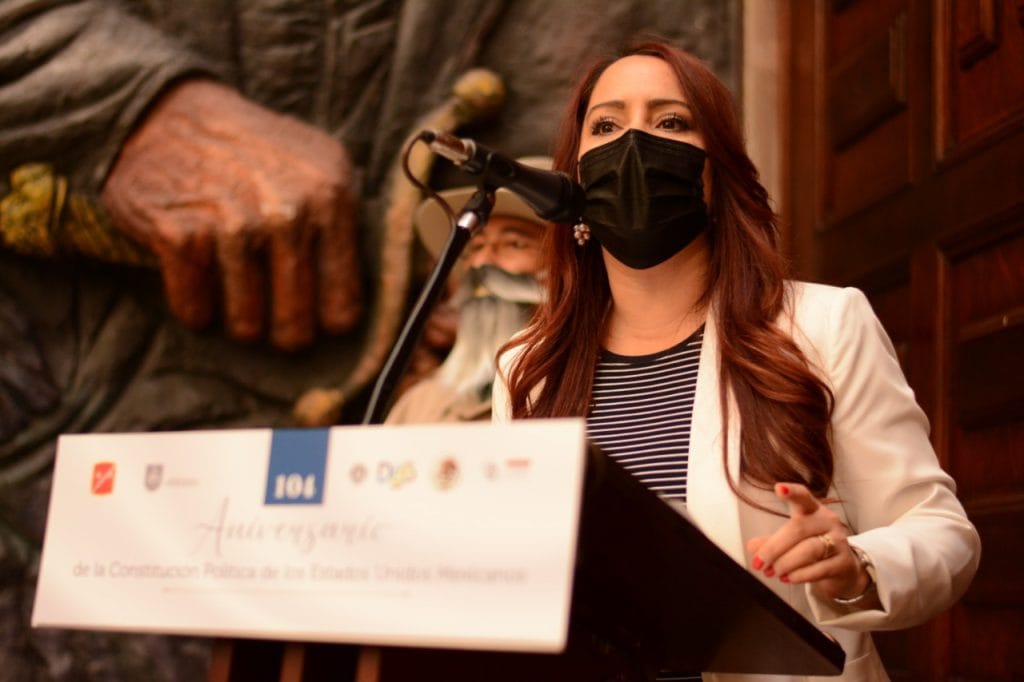 Lo anterior, durante el acto cívico en el marco de la conmemoración del 104 aniversario de la Constitución Política de los Estados Unidos Mexicanos, encabezado por los representantes de los Tres Poderes.