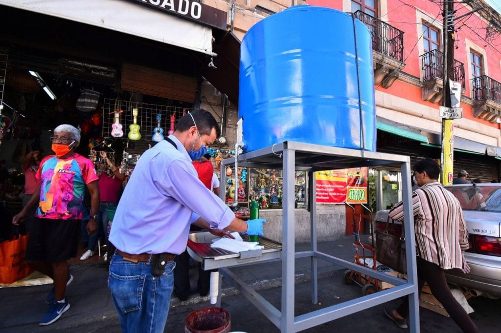 Coloca lavamanos en los accesos al Mercado, por calles Pasteur y Patoni