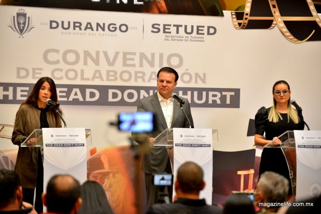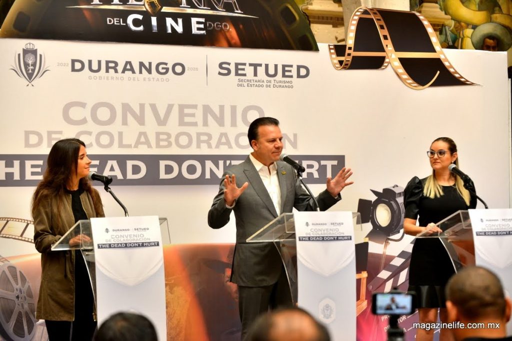 “Esta será la mejor película Western que se haga en esta etapa, por la sencilla razón que está hecha en Durango y todo lo que se hace en aquí, se hace con todo el corazón y con gran valor”, expresó el gobernador Esteban Villegas Villarreal al signar el convenio de colaboración para la filmación de la película “The Dead Don’t Hurt”, que contará con la participación del reconocido actor Viggo Mortensen y que dejará una derrama económica de 120 millones de pesos.