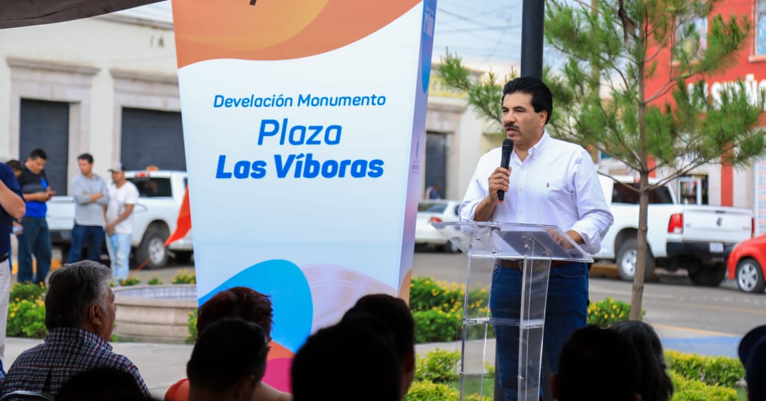 Develan autoridades municipales monumento de bronce en la plaza de la Víboras del Barrio de Tierra Blanca.