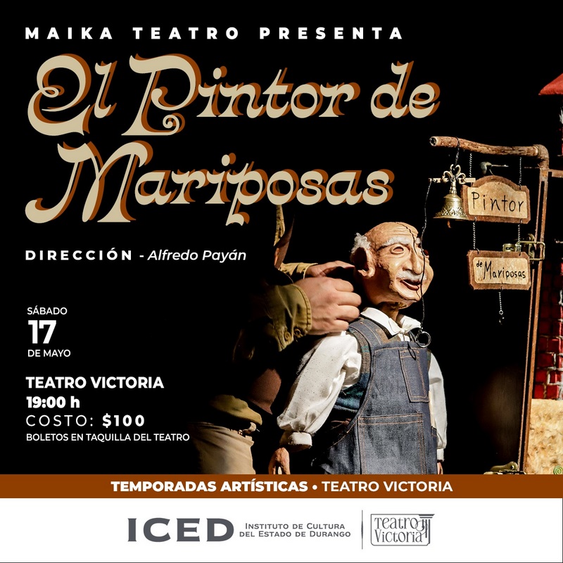 «El pintor de mariposas» es una propuesta escénica llena de magia y ternura, ideal para disfrutar en familia. Los boletos para esta entrañable función tendrán un costo de $100.00 y también estarán a la venta en la taquilla del Teatro Victoria.
